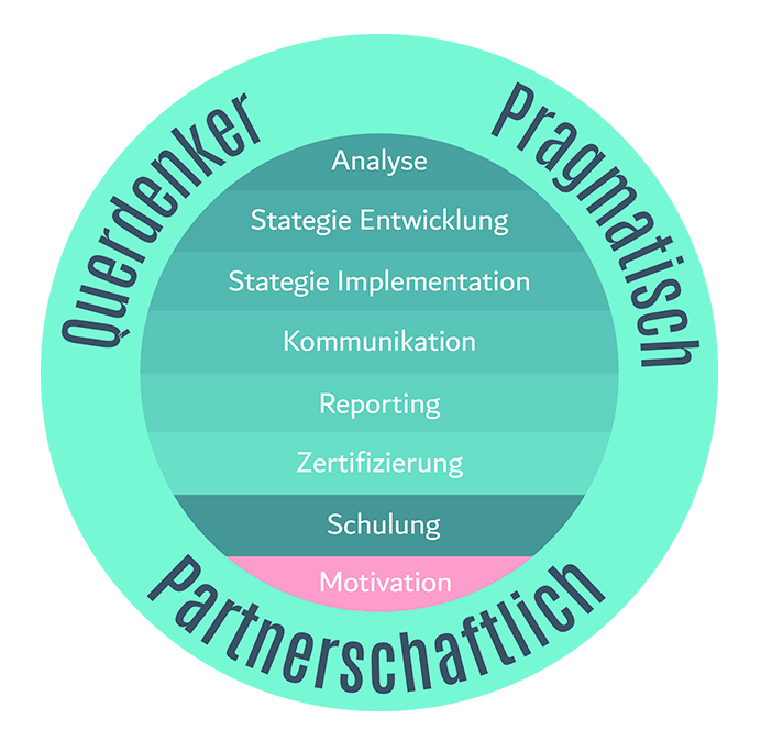 • Nachhaltigkeits-Berichterstattung (u.a. CDP und SBTi sowie offizieller Trainings-Partner EcoVadis)